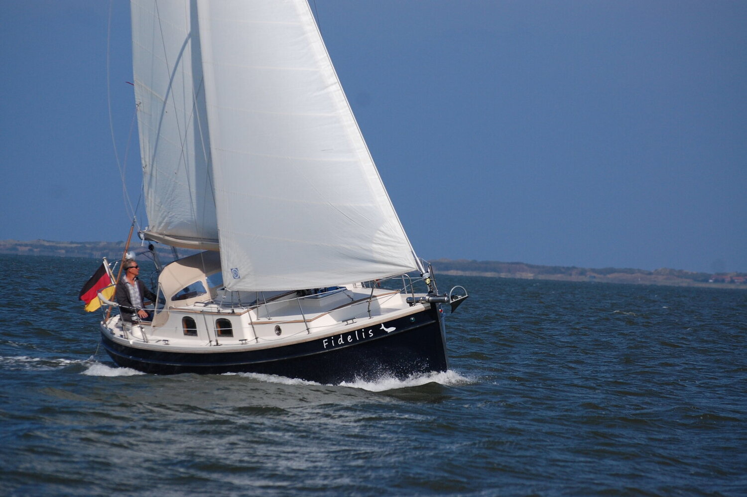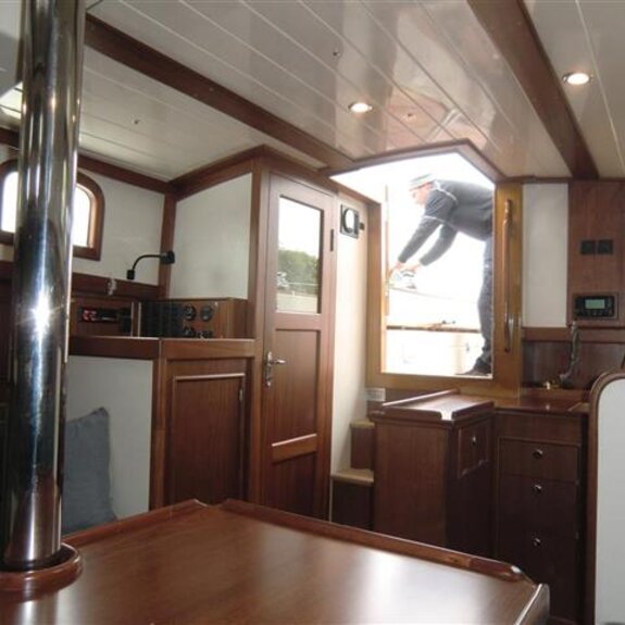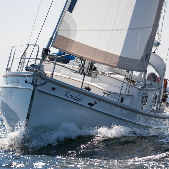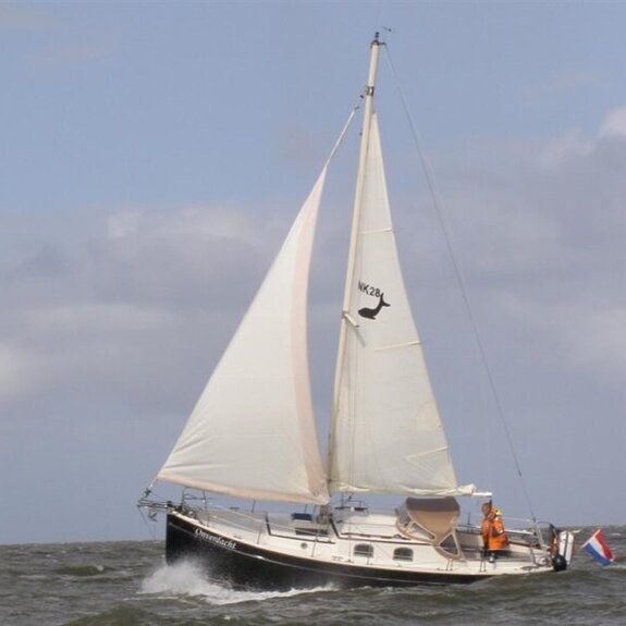 Ein kompakter Noordkaper in Polyesterausführung, klassisch geschnitten, aber modern getakelt: 7/8-Tornetakelung, trimmbares Achterstag und gepfeilte Salinge für einfache Masttrimmung.