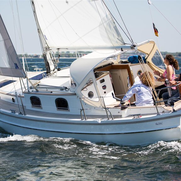 Die Nk28C segelt flott und genauso hoch am Wind wie vergleichbare scharfe Yachten, kann aber dank ihres geringen Tiefgangs mit eingezogenem Schwert Orte erreichen, von denen andere nur träumen können. Der Innenraum ist für eine Yacht dieser Größe überraschend groß: