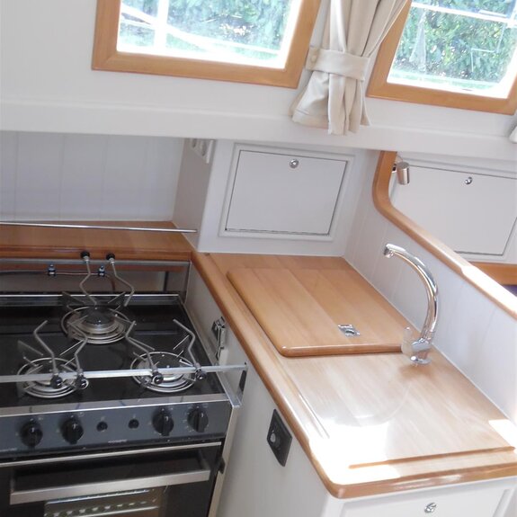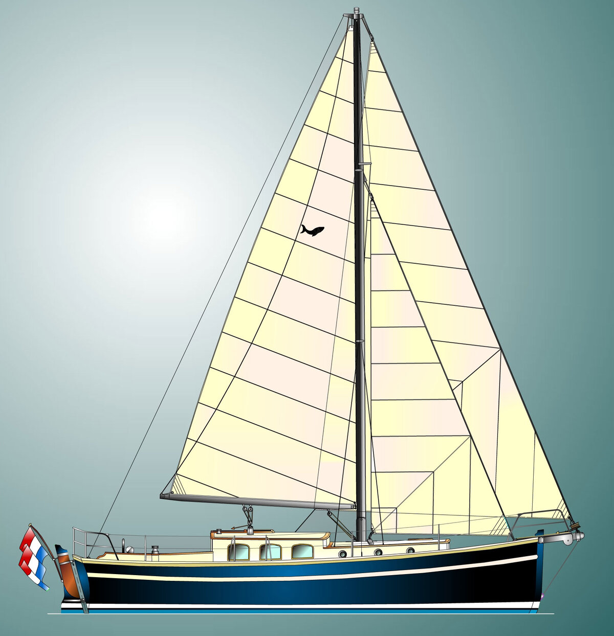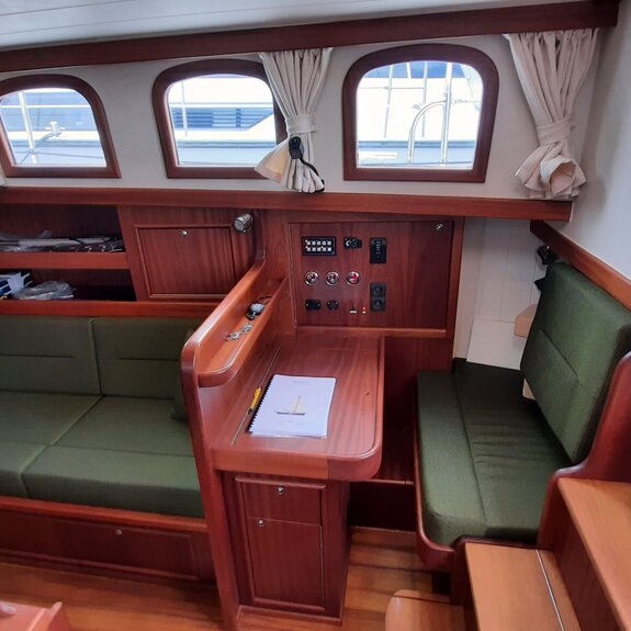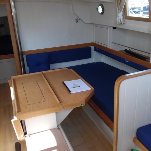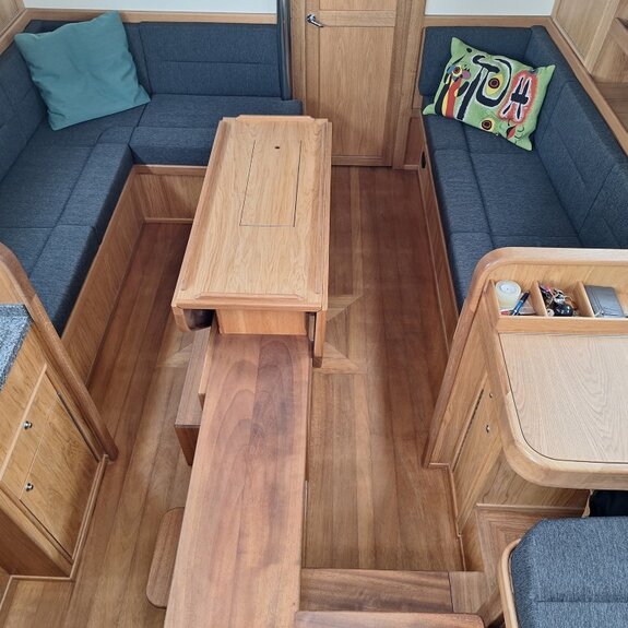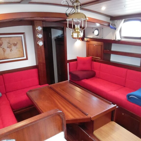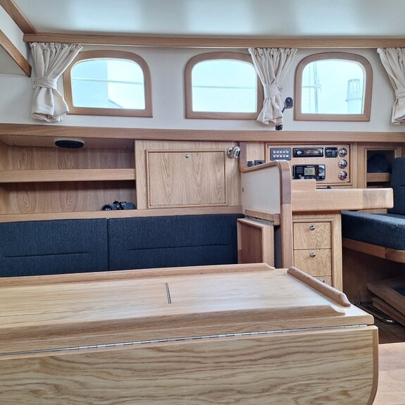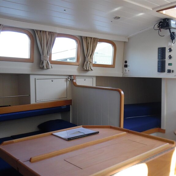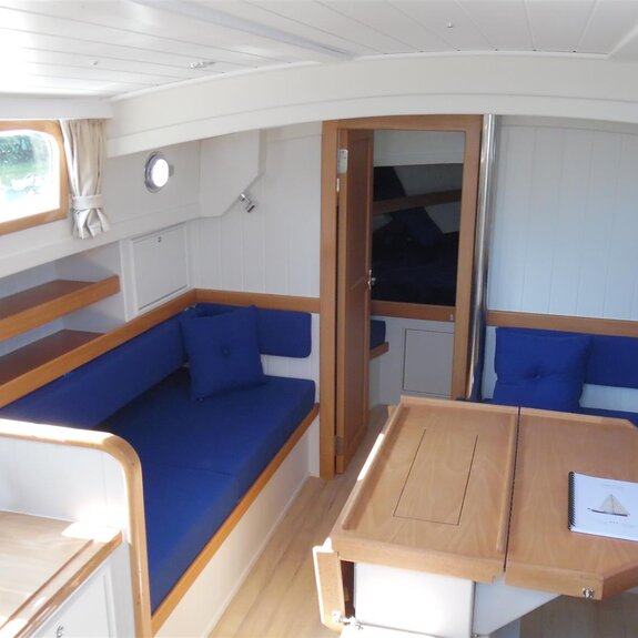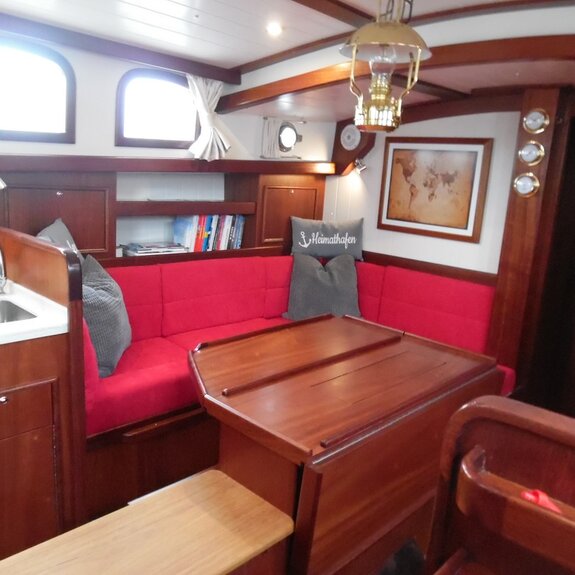 Die Takelage ist wahlweise klassisch mit Rundholmen und Gaffelsegel oder modern mit Aluminium-Tornetakelage und Rollvorsegel, Sloop- oder Kuttertakelung.