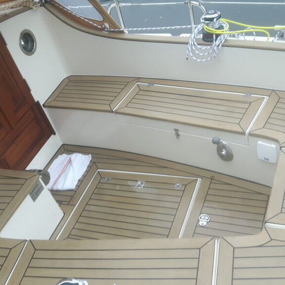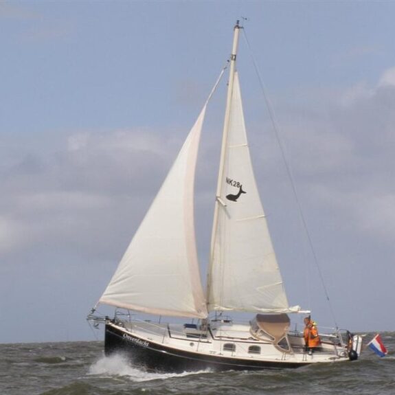 A compact Noordkaper in polyester construction, classically cut but modernly rigged: 7/8 torn rigging, trimmable backstay, and swept spreaders for easy mast trimming.