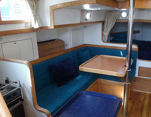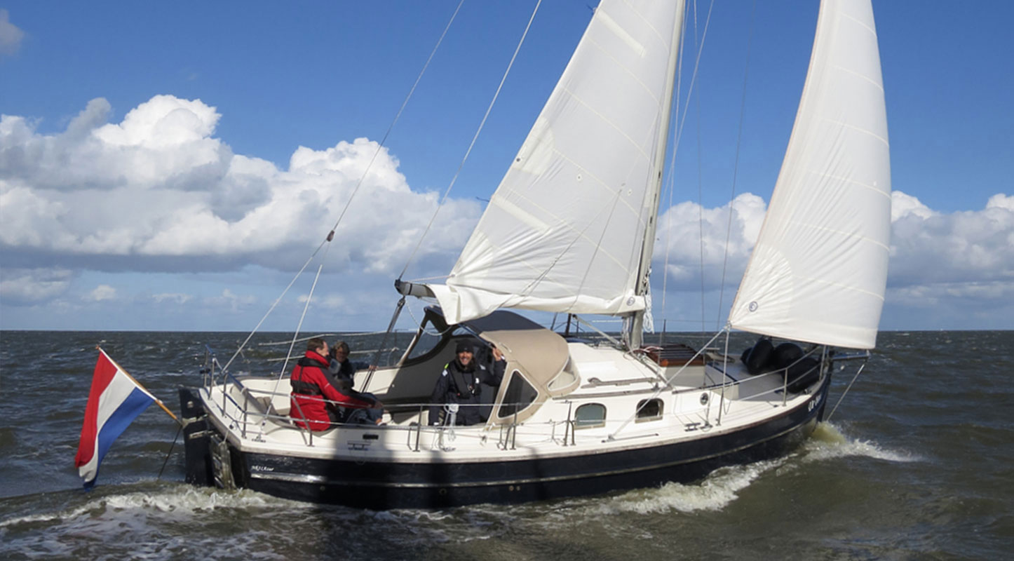 NOORDKAPER 31 Azur van polyester: luxueus uitgerust met ruime cockpit en stuurwiel. In vergelijking met de NOORDKAPER 31C is de cockpit uitgebreid met een aparte stuurkuip. Naast de hier getoonde zeilversie zijn er verschillende varianten mogelijk: